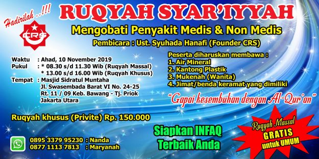 Hadirlah pengobatan Qurani pada Tgl. 03 Nov 2019