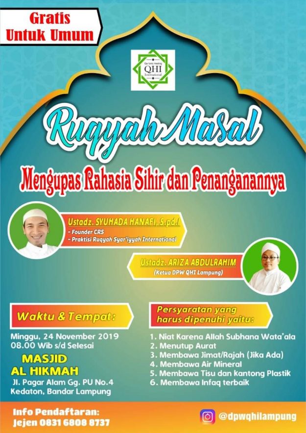 Hadirilah Ruqyah massal Gratis untuk umum di kota Bandar Lampung