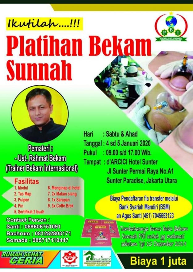 Hadirilah pelatihan Bekam yang sesuai Sunnah.