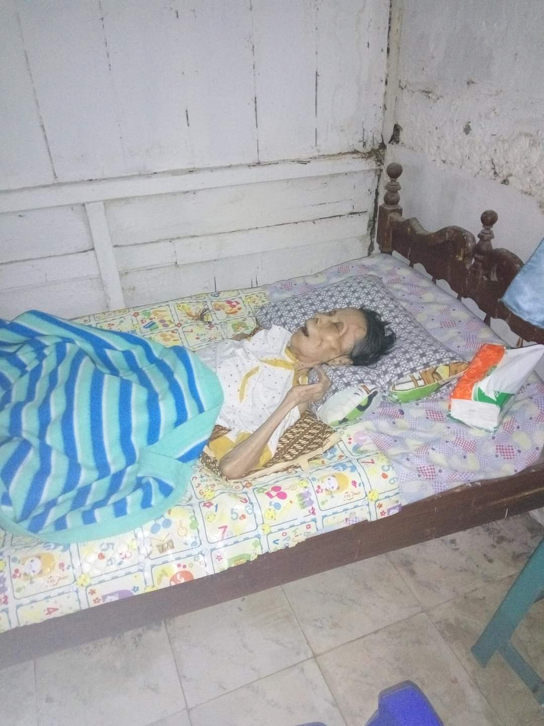 Lumpuh tidak berdaya selama 8 tahun. Makan minum sudah sangat sedikit. Sudah beberapa minggu tidak BAB dan BAK. Keadaannya memprihatinkan sdh tidak bisa komunikasi. Keluarga nya berharap melalui Ruqyah Syar’iyyah, Allah memberikan yang terbaik bagi sang nenek.