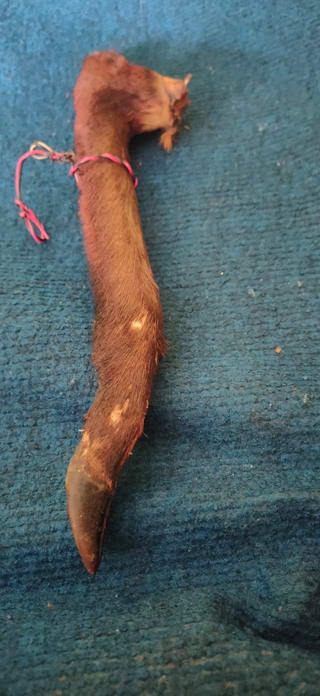 Everything is ok sampai pada suatu ketika rekan saya melihat sesuatu yg sedikit mengganjal, dari jauh terlihat seperti batang kayu, namun setelah diperhatikan dengan seksama ternyata ada potongan sebuah kaki kancil. Kata sang empunya ini hanya hadiah dari seseorang dan tidak ada maksud apa2 selain hiasan. Namun bagai menyimpan sampah didalam rumah, benda tersebut merupakan kaki yg diawetkan, dan sejatinya ini adalah tulang belulang.