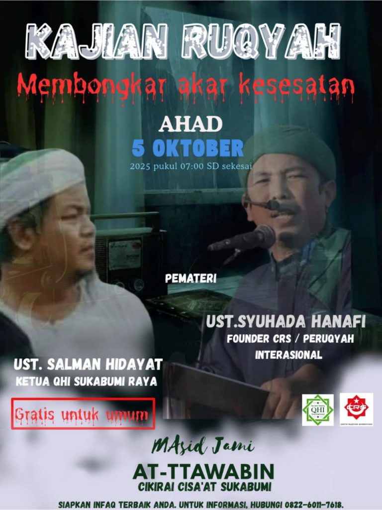 Category: Uncategorized22 September, 2025Leave a commentShare this post Author: Syuhada Hanafi, S.Pd.I Founder CRS, Trainer International CRS / QHI Related postsMERUQYAH PASIEN YANG MEMILIKI LAFADZ ALLAH20 October, 2024Pandangan Sihir dalam kitab Tafsir PART 220 October, 2024Kok Bisa Kesurupan di Bulan Ramadhan?12 March, 2024RUQYAH MASSAL JAKARTA BARAT12 July, 2023